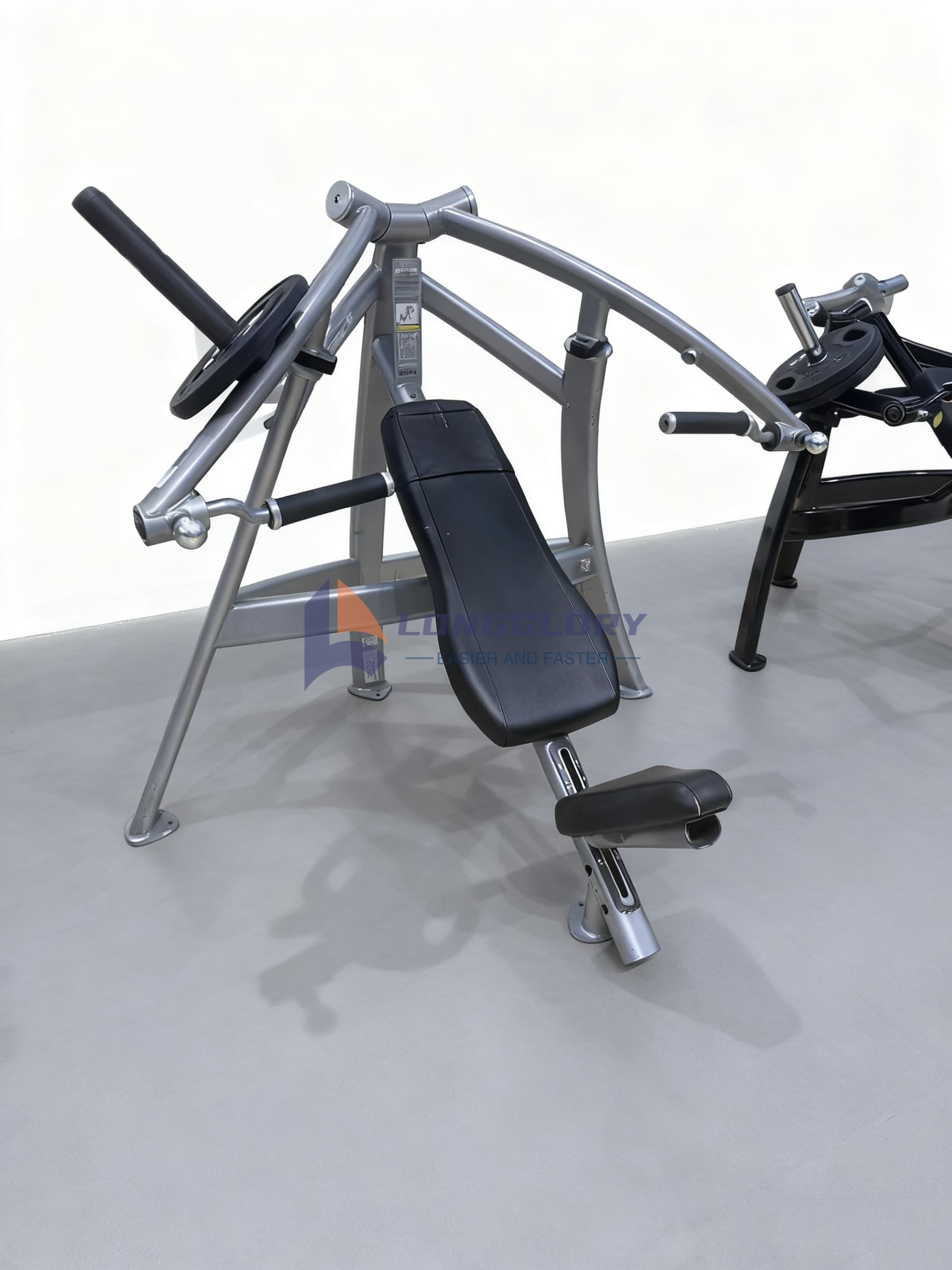 Το Commercial Incline Chest Press είναι κατασκευασμένο με σκελετό από χάλυβα βαρέως τύπου για να εξασφαλίζει μακροχρόνια ανθεκτικότητα και σταθερότητα σε εμπορική χρήση υψηλής συχνότητας. Η εργονομική γωνία κλίσης του βοηθά στην ενεργοποίηση των άνω θωρακικών μυών πιο αποτελεσματικά από τις επίπεδες κινήσεις πίεσης, καθιστώντας το Commercial Incline Chest Press ένα απαραίτητο μηχάνημα για προπόνηση ενδυνάμωσης στο στήθος σε εμπορικά γυμναστήρια.