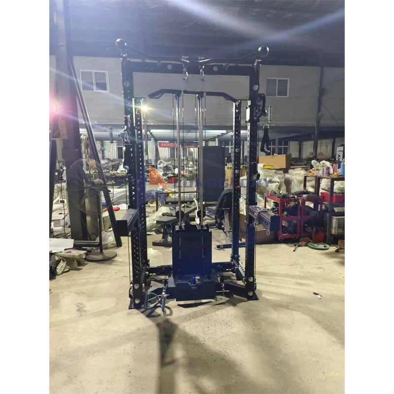 A πολυλειτουργικός εκπαιδευτής, επίσης γνωστή ως μια ολοκληρωμένη μηχανή κατάρτισης, συνήθως αποτελείται από ένα κύριο πλαίσιο που συνδέεται με τα εμπρός και πίσω στηρίγματα. Στην κορυφή του κύριου πλαισίου υπάρχει μια ρυθμιζόμενη στήλη με γωνιακά και καμπύλα τμήματα. Το κεκλιμένο ανώτερο τμήμα συνδέεται με το συγκρότημα βραχίονα, ενώ το άλλο άκρο είναι σταθερό στη μέση της κύριας δομής. Το κάτω σώμα του κύριου πλαισίου βρίσκεται στην μπροστινή βάση, με το επάνω τμήμα να ακολουθεί τις φυσικές καμπύλες του σώματος. Ένα μαξιλάρι τοποθετείται στο μπροστινό μέρος του πλαισίου και είναι κινητό μέσω ενός πείρου τραβήγματος μεταξύ δύο εξαρτημάτων οπλισμού. Η ρυθμιζόμενη στήλη συνδέεται με μια βάση ζώνης αντίστασης μέσω ενός γωνιακού πείρου τραβήγματος στον ρυθμιστή. Το ένα άκρο της βάσης συνδέεται με ένα σύνολο ελαστικών ζωνών αντίστασης.